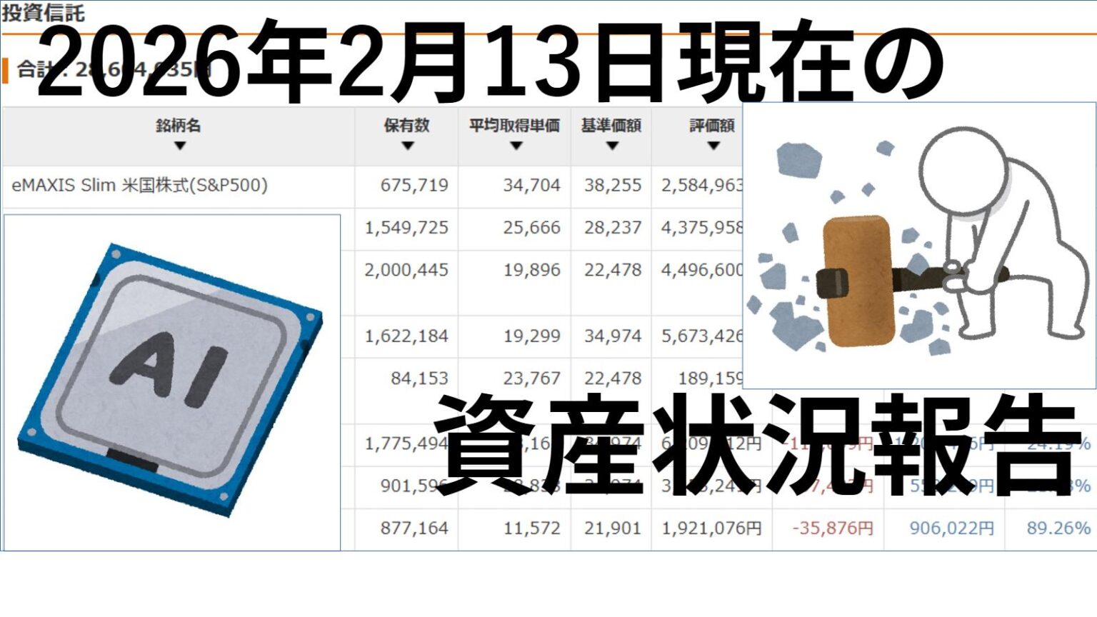 この記事は2026年2月13日現在の資産運用状況についてご報告するとともに、今週のマーケットや注目の経済指標の動向について振り返ります。