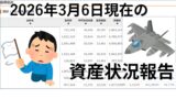 2026年3月6日時点の資産状況報告もどうぞ参考にしてください。