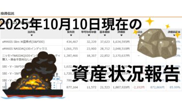 投資 【新規失業保険申請件数/CPI・PPI】2025年10月10日 最新の資産運用状況まとめ(S&P500/NASDAQ100/全米株式) こんにちは!インデックス投資を続けている上級初心者(⇨運営者情報はこちら)です!2025年10月10日現在の資産運用状況についてご報告するとともに、今週のマーケットや注目の経済指標の動向について振り返ります。2025年10月3日時点の資産状... 2025.10.11 投資