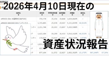 投資 【CPI/PPI 】2026年4月10日 最新の資産運用状況まとめ(S&P500/NASDAQ100/全米株式) こんにちは!インデックス投資を続けている上級初心者(⇨運営者情報はこちら)です!この記事は2026年4月10日現在の資産運用状況についてご報告するとともに、今週のマーケットや注目の経済指標の動向について振り返ります。2026年4月3日時点の... 2026.04.11 投資