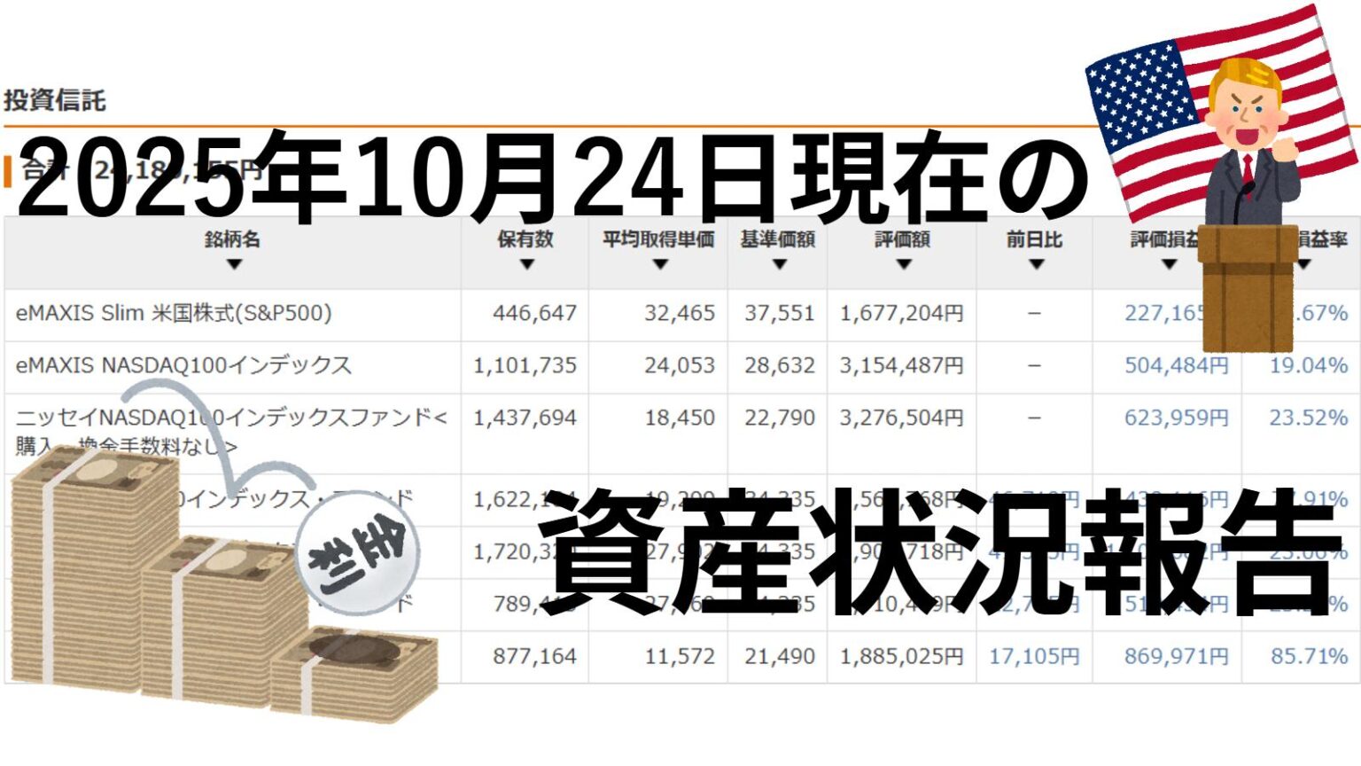 2025年10月24日現在の資産運用状況についてご報告するとともに、今週のマーケットや注目の経済指標の動向について振り返ります。